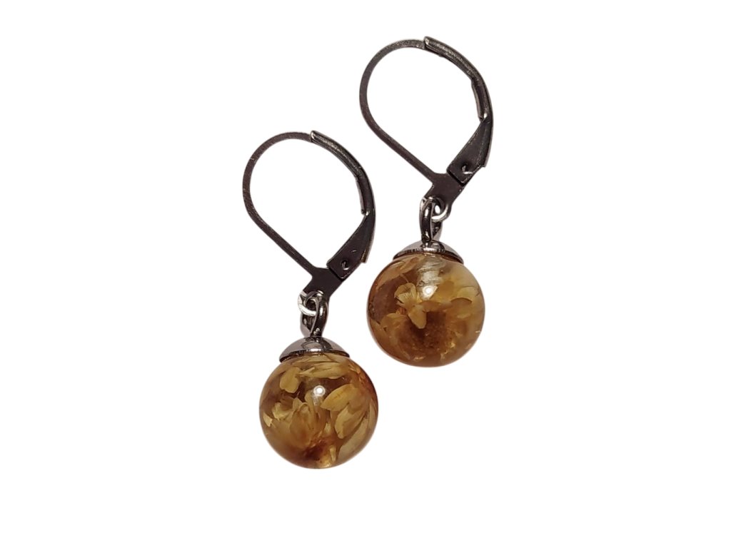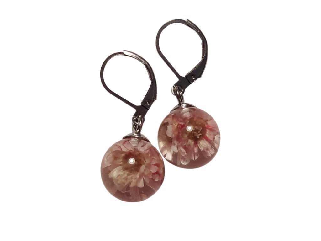 Květinové náušnice kapka z pryskyřice – s květy glixie: symbol krásy.