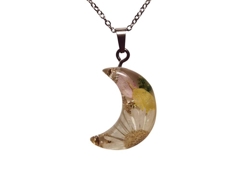 Přívěsek je vyroben z pryskyřice, která krásně uchovává přirozený vzhled květin.