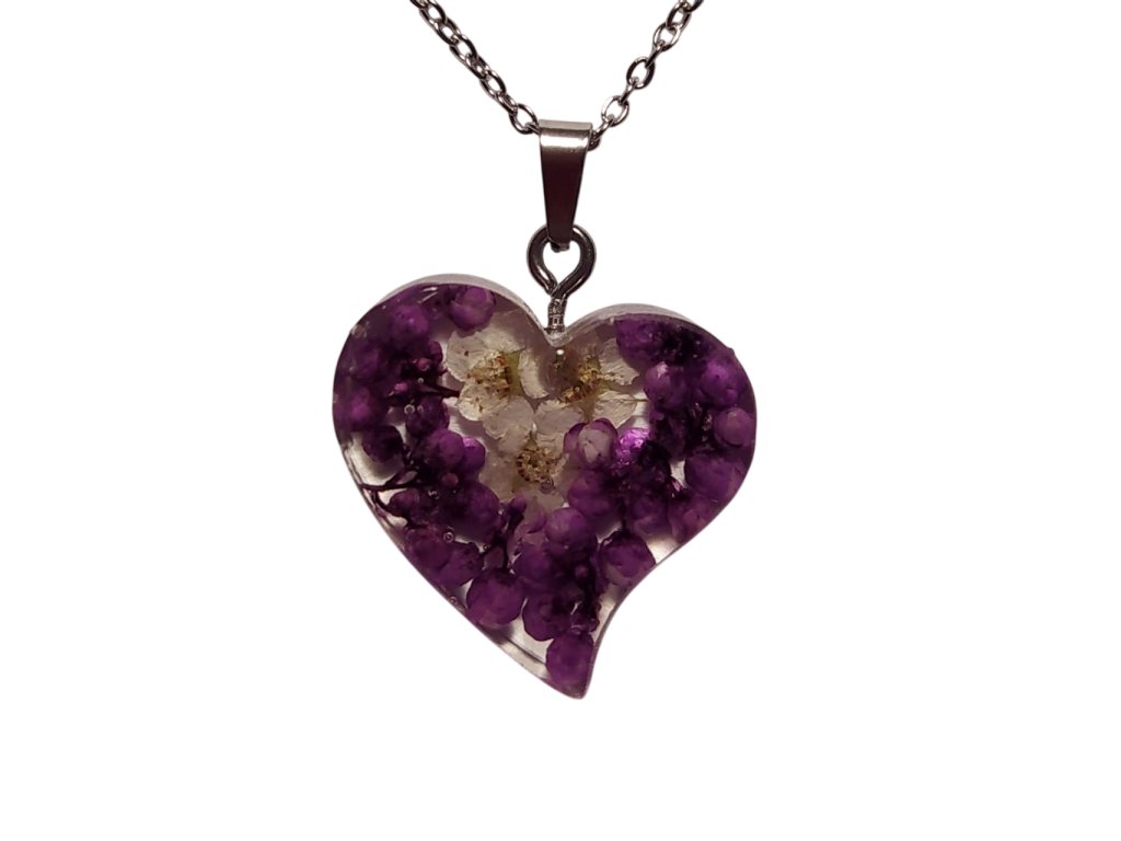 Přírodní květiny jsou pečlivě vybírány a zalévány do kvalitní šperkařské křišťálové pryskyřice, což jim dodává dlouhou životnost a jedinečný vzhled. Každý šperk je ručně vyráběný, takže se může mírně lišit od fotografie.