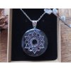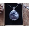 Ochranný orgonitový přívěsek s přírodním obsidiánem a symboly posvátné geometrie.
